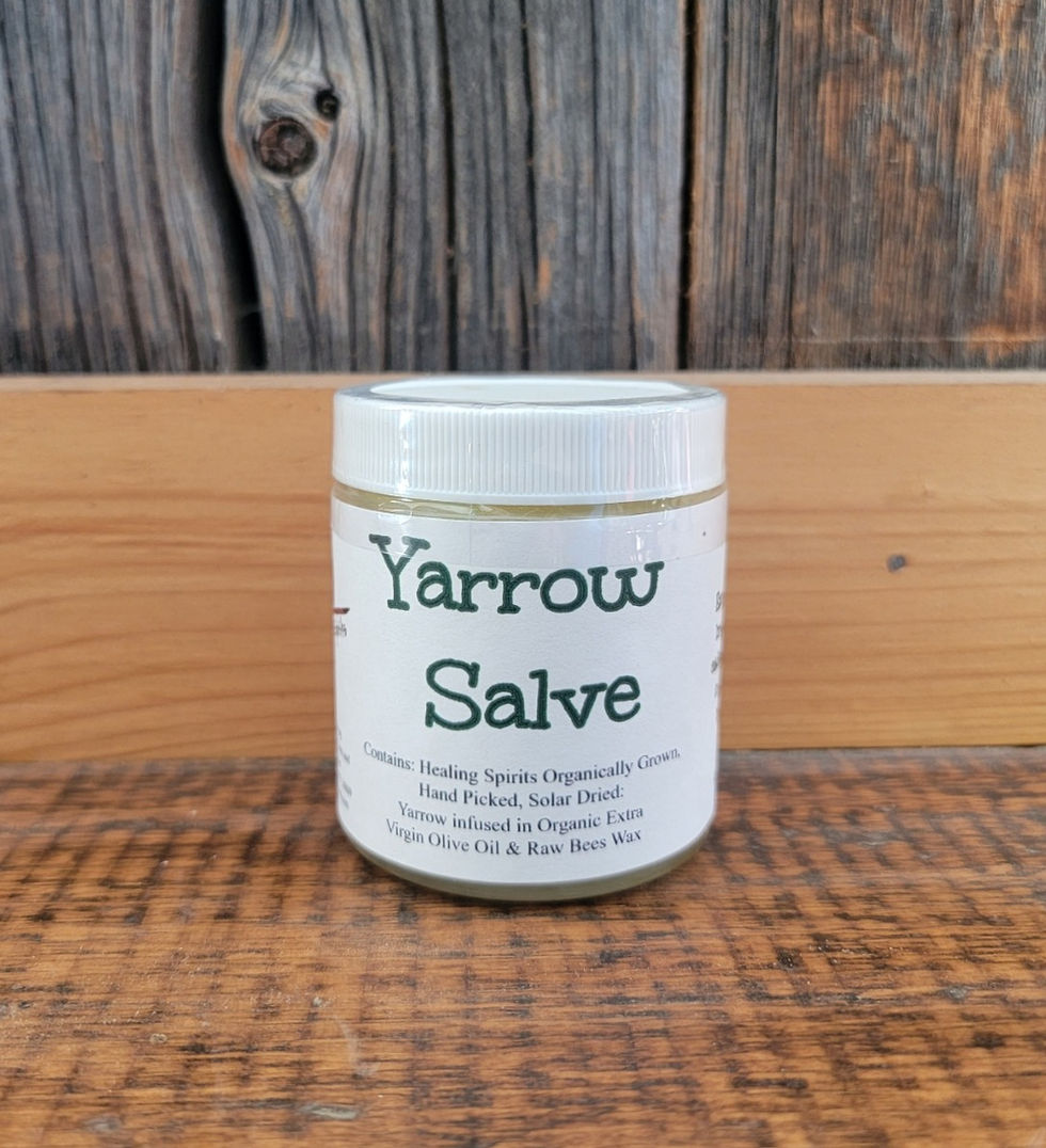 All salves are made with cold pressed extra virgin olive oil, unprocessed beeswax and Healing Spirits own hand-picked, solar dried, certified organically grown or wild crafted herbs.